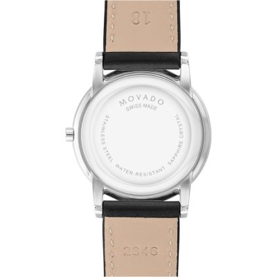 Cette montre Movado a un boîtier Inox 33 mm en diamètre et est équipée d'un bracelet cuir. Le boîtier contient un mouvement ETA et la montre est dotée d'un cristal Saphire..
