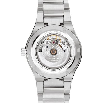 Cette montre Movado a un boîtier Inox 40 mm en diamètre et est équipée d'un bracelet Inox. Le boîtier contient un mouvement Sellita et la montre est dotée d'un cristal Saphire..