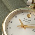 Cette magnifique montre Movado classique bicolore pour femmes présente 10 index en diamants véritables et une lunette cannelée brillante.