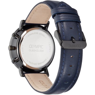 Cette montre Olympic a un boîtier Inox 40 mm en diamètre et est équipée d'un bracelet cuir. Le boîtier contient un mouvement Seiko Instruments Inc. et la montre est dotée d'un cristal Saphire..