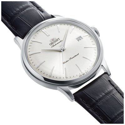 Cette montre Orient a un boîtier Inox 40 mm en diamètre et est équipée d'un bracelet cuir. Le boîtier contient un mouvement Orient et la montre est dotée d'un cristal Minéral..