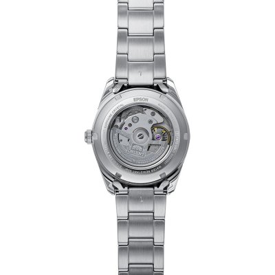 Cette montre Orient a un boîtier Inox 38.5 mm en diamètre et est équipée d'un bracelet Inox. Le boîtier contient un mouvement Orient et la montre est dotée d'un cristal Saphire..