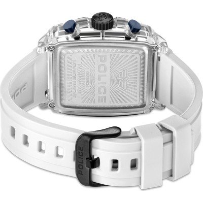 Cette montre Police a un boîtier Résine 48 mm en diamètre et est équipée d'un bracelet caoutchouc. Le boîtier contient un mouvement Seiko Instruments Inc. et la montre est dotée d'un cristal Minéral..