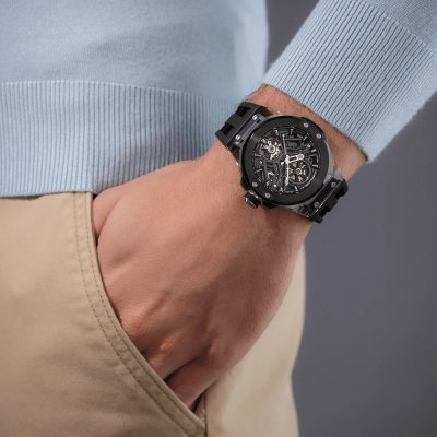 Cette montre Police a un boîtier Résine 44 mm en diamètre et est équipée d'un bracelet caoutchouc. Le boîtier contient un mouvement CN et la montre est dotée d'un cristal Minéral..