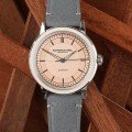 La collection Raymond Weil Millesime a vu le jour en 2024. Cette nouveauté relativement récente de la marque Raymond Weil rend hommage à son riche héritage tout en célébrant la simplicité d'un design raffiné. Le cadran a été réduit à l'essentiel : un cadran sectoriel affiche les heures, les minutes et les secondes sur des pistes discrètes, améliorant ainsi la lisibilité, tout comme les aiguilles dauphinoises magnifiquement taillées, et la zone centrale du cadran est ornée d'un délicat pinceau vertical. La lunette est également ornée d'une brosse satinée verticale qui contraste merveilleusement avec le biseau et les cornes hautement polis. Outre un verre saphir boxé, un fond saphir permet de voir le mouvement à remontage automatique. La Millesime est disponible dans une sélection de couleurs de cadran, associée à un bracelet en cuir de veau de couleur coordonnée avec un détail de couture en W unique.