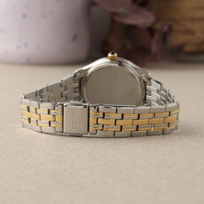 Cette montre Seiko a un boîtier Inox 29 mm en diamètre et est équipée d'un bracelet Inox. Le boîtier contient un mouvement Seiko et la montre est dotée d'un cristal Saphire..