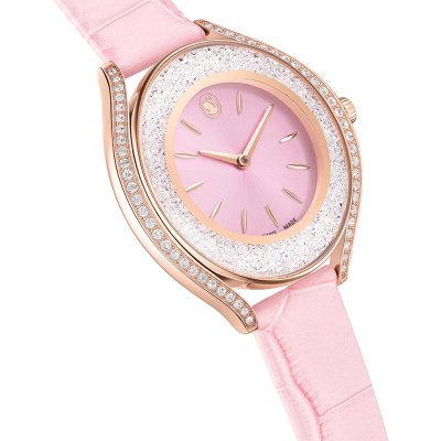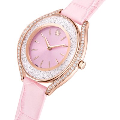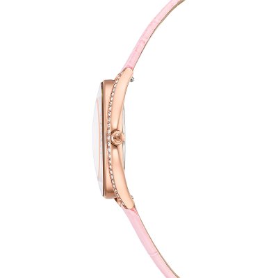 Cette montre Swarovski a un boîtier Inox 35.5 mm en diamètre et est équipée d'un bracelet cuir. Le boîtier contient un mouvement Ronda et la montre est dotée d'un cristal Minéral..