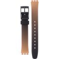 Ce bracelet de montre Swatchest fait de silicone et est attaché à la montre au moyen de goupilles en acier. Le bracelet a une taille de 12 mm et se ferme au moyen d'un boucle. Le bracelet n'a pas de support droit, ce qui signifie que ce bracelet convient uniquement aux montres énumérées ci-dessous.