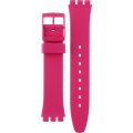 Ce bracelet de montre Swatchest fait de silicone et est attaché à la montre au moyen de goupilles en acier. Le bracelet a une taille de 17 mm et se ferme au moyen d'un boucle. Le bracelet n'a pas de support droit, ce qui signifie que ce bracelet convient uniquement aux montres énumérées ci-dessous.