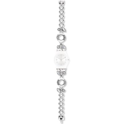 Ce bracelet de montre Swatchest fait de acier inoxydable et est attaché à la montre au moyen de goupilles en acier. Le bracelet a une taille de 12 mm et se ferme au moyen d'un fermoir bijoux. Le bracelet n'a pas de support droit, ce qui signifie que ce bracelet convient uniquement aux montres énumérées ci-dessous.