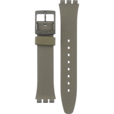 Ce bracelet de montre Swatchest fait de silicone et est attaché à la montre au moyen de goupilles en acier. Le bracelet a une taille de 17 mm et se ferme au moyen d'un boucle. Le bracelet n'a pas de support droit, ce qui signifie que ce bracelet convient uniquement aux montres énumérées ci-dessous.