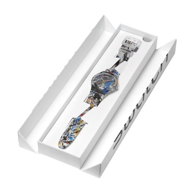 Cette montre Swatch a un boîtier Résine 41 mm en diamètre et est équipée d'un bracelet caoutchouc. Le boîtier contient un mouvement ETA et la montre est dotée d'un cristal Acrylique..