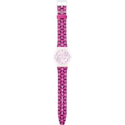 Ce bracelet de montre Swatchest fait de textile sur Cuir et est attaché à la montre au moyen de goupilles en acier. Le bracelet a une taille de 16.5 mm et se ferme au moyen d'un boucle. Le bracelet n'a pas de support droit, ce qui signifie que ce bracelet convient uniquement aux montres énumérées ci-dessous.