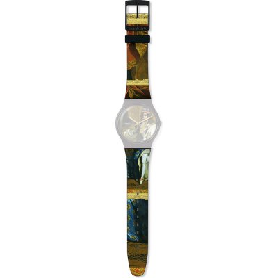 Ce bracelet de montre Swatchest fait de silicone et est attaché à la montre au moyen de goupilles en acier. Le bracelet a une taille de 19.7 mm et se ferme au moyen d'un boucle. Le bracelet n'a pas de support droit, ce qui signifie que ce bracelet convient uniquement aux montres énumérées ci-dessous.