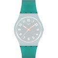 Ce bracelet de montre Swatchest fait de caoutchouc / Silicone et est attaché à la montre au moyen de goupilles en acier. Le bracelet a une taille de 17 mm et se ferme au moyen d'un boucle. Le bracelet n'a pas de support droit, ce qui signifie que ce bracelet convient uniquement aux montres énumérées ci-dessous.