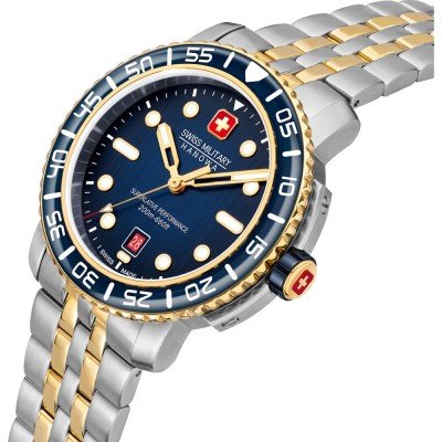 La montre est 20 ATM. Cela signifie que la montre est adaptée à la plongée. La montre est livrée avec la Swiss Military 3+2.
