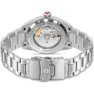 Cette montre Swiss Military Hanowa a un boîtier Inox 41 mm en diamètre et est équipée d'un bracelet Inox. Le boîtier contient un mouvement Soprod et la montre est dotée d'un cristal Saphire..