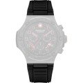 Ce bracelet de montre Swiss Military Hanowaest fait de silicone et est attaché à la montre au moyen de goupilles en acier. Le bracelet a une taille de 26 mm et se ferme au moyen d'un boucle. Le bracelet n'a pas de support droit, ce qui signifie que ce bracelet convient uniquement aux montres énumérées ci-dessous.