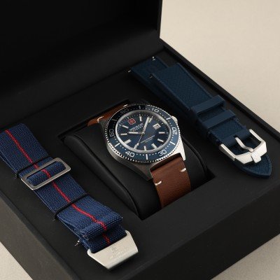 La montre est 10 ATM. Cela signifie que la montre est adaptée à la natation. La montre est livrée avec la Swiss Military 3+2.