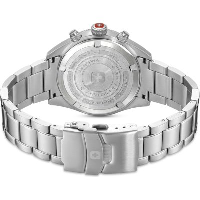Cette montre Swiss Military Hanowa a un boîtier Inox 43 mm en diamètre et est équipée d'un bracelet Inox. Le boîtier contient un mouvement Ronda et la montre est dotée d'un cristal Saphire..
