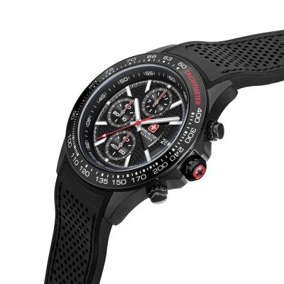 Cette montre Swiss Military Hanowa a un boîtier Inox 43 mm en diamètre et est équipée d'un bracelet caoutchouc. Le boîtier contient un mouvement Ronda et la montre est dotée d'un cristal Saphire..