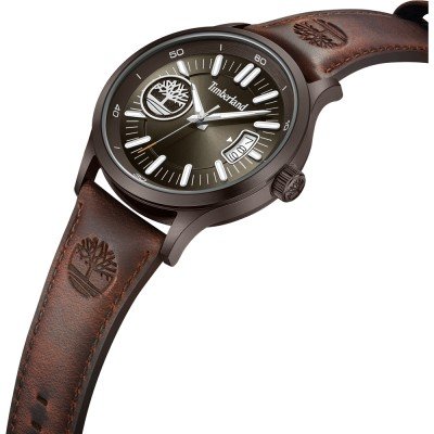 Cette montre Timberland a un boîtier Inox 45 mm en diamètre et est équipée d'un bracelet cuir. Le boîtier contient un mouvement Seiko Instruments Inc. et la montre est dotée d'un cristal Minéral..