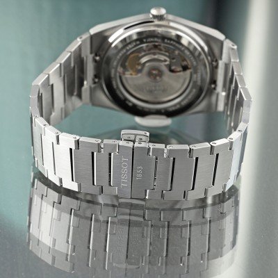 Cette montre Tissot a un boîtier Inox 40 mm en diamètre et est équipée d'un bracelet Inox. Le boîtier contient un mouvement ETA et la montre est dotée d'un cristal Saphire..