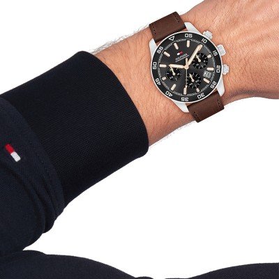 Cette montre Tommy Hilfiger a un boîtier Inox 41 mm en diamètre et est équipée d'un bracelet cuir. Le boîtier contient un mouvement Seiko Instruments Inc. et la montre est dotée d'un cristal Minéral..
