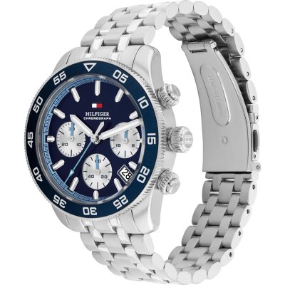 Cette montre Tommy Hilfiger a un boîtier Inox 41 mm en diamètre et est équipée d'un bracelet Inox. Le boîtier contient un mouvement Seiko Instruments Inc. et la montre est dotée d'un cristal Minéral..