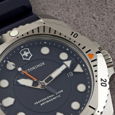 Les montres à quartz Victorinox Dive Pro sont disponibles en acier et en titane et avec un choix de bracelets différents, du caoutchouc aux couleurs vives à la paracorde pratique. Elles ont en commun un puissant mouvement à quartz Ronda suisse, la certification ISO 6425, une résistance à l'eau de 30 ATM, une lunette tournante unidirectionnelle et des index et aiguilles à haute visibilité. La montre est conçue, fabriquée et testée dans l'usine Victorinox de Delémont.