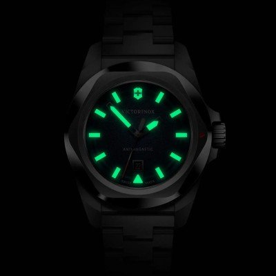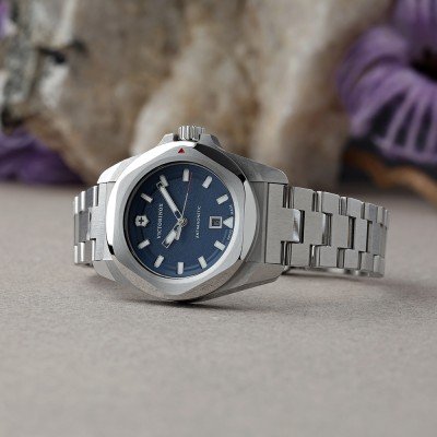 Cette montre Victorinox a un boîtier Inox 32 mm en diamètre et est équipée d'un bracelet Inox. Le boîtier contient un mouvement Ronda et la montre est dotée d'un cristal Saphire..
