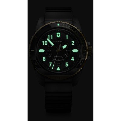 Cette montre Victorinox a un boîtier Inox 43 mm en diamètre et est équipée d'un bracelet caoutchouc. Le boîtier contient un mouvement Ronda et la montre est dotée d'un cristal Saphire..